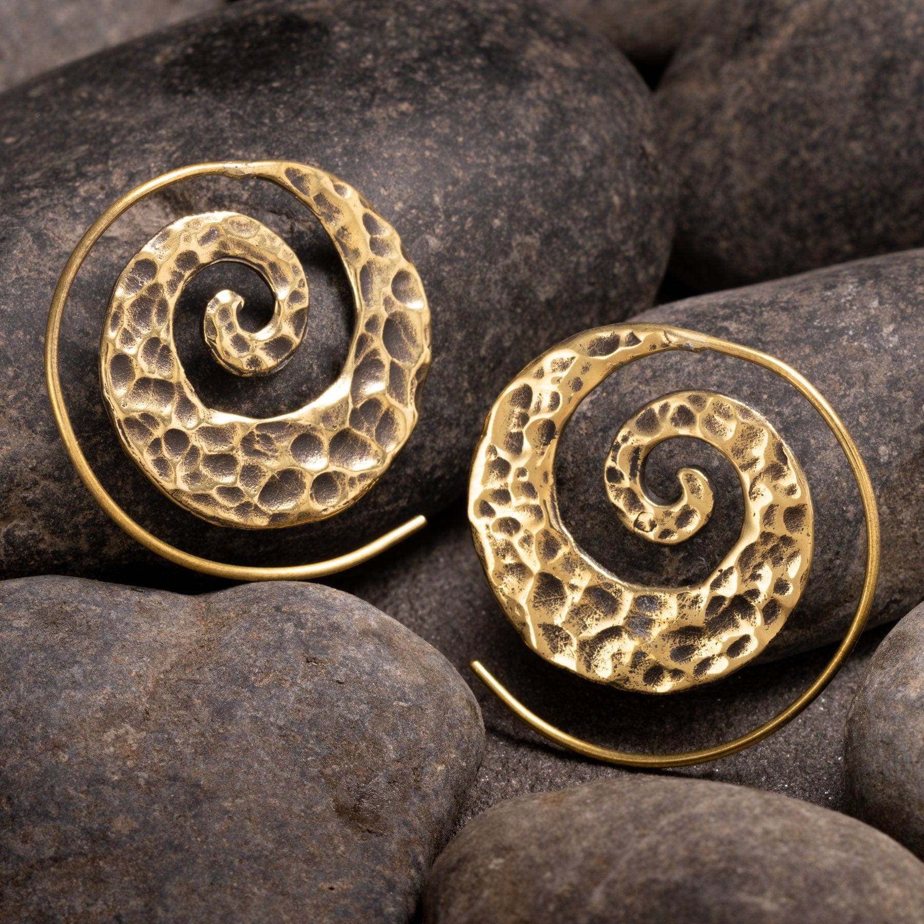 Meet your new go-to for elevated ear style: hammered spiral brass hangers. Each pair showcases hand-hammered texture that reflects light with every turn, creating a lively blend of vintage and modern flair. The spiral shape adds movement and visual interest, while the golden brass gives a warm, bohemian finish.