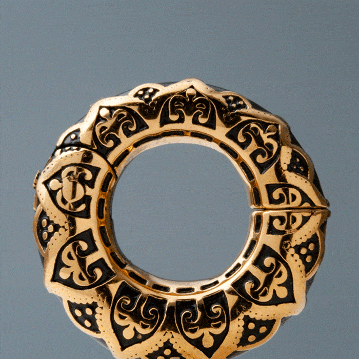 - Shape: Circular with engraved pattern